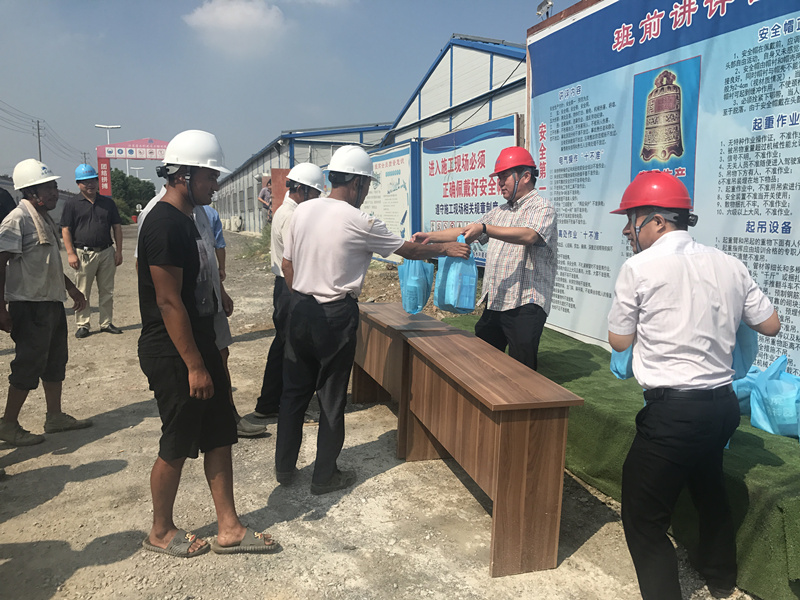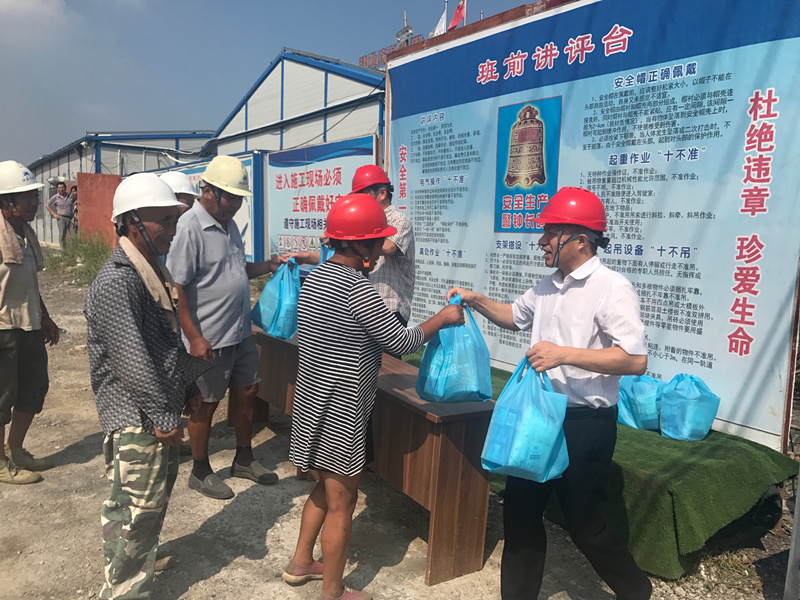 8月10日上午,集团副总经理相文生、花桃率队来到施工现场,向坚持在酷暑中工作的施工人员表示慰问和感谢,并送去了夏令用品,叮嘱一线员工一定要把安全放在第一位,合理安排作息时间,注重劳逸结合。