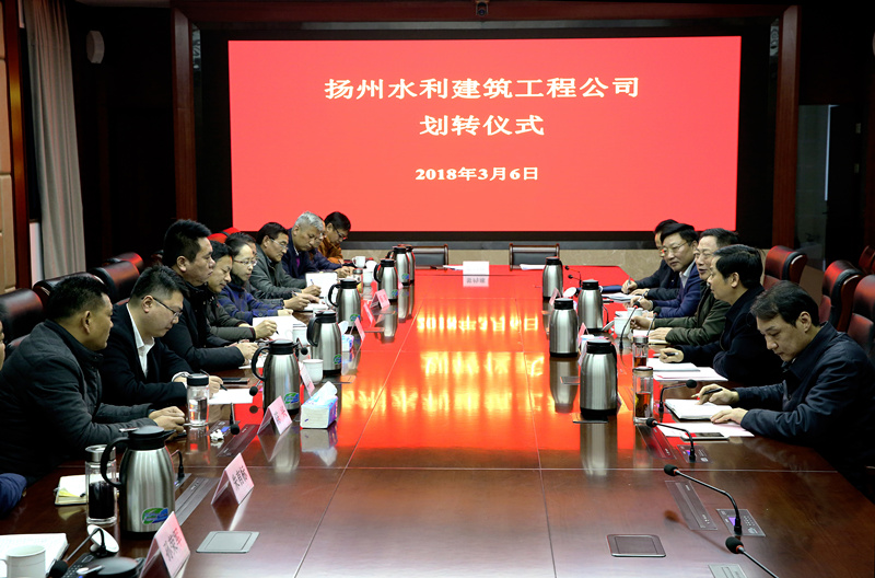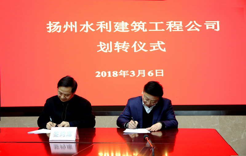 3月6日下午,在市国资委见证下,市水利局与集团举行扬州水利建筑工程公司划转签约仪式。市国资委主任王庆山出席签约仪式并讲话,市水利局局长康盛君与集团董事长、总经理徐渊签署《国有产权无偿划转协议》。