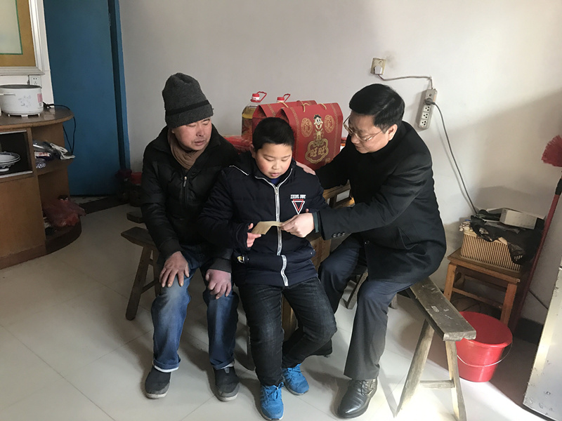 徐董事长来到河东组马发林家,详细询问了其家庭全年收成的情况和两个小孩的学习情况,并送去慰问品和慰问金,提前送去新春祝福。