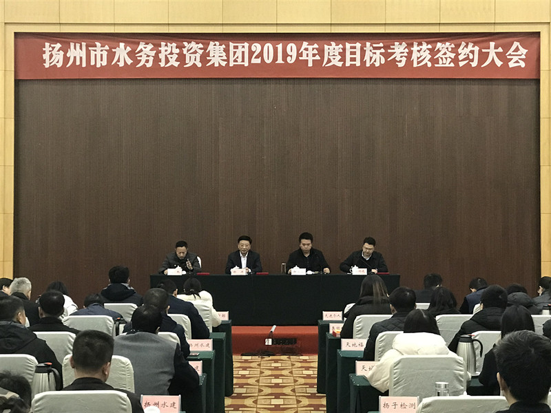 1月30日下午,集团召开2019年度目标考核签约大会,总结回顾2018年工作,部署安排今年重点目标任务,动员集团上下推进思想解放、加快改革创新,看到发展的大势和自身的优势、承担国企的社会责任,在“美丽中国、扬州样板”的实践中奋发有为、建功立业。集团董事长、总经理徐渊讲话。副总经理相文生主持会议,副总经理花桃宣读表彰决定,副总经理金润廷及集团系统全体员工出席会议。