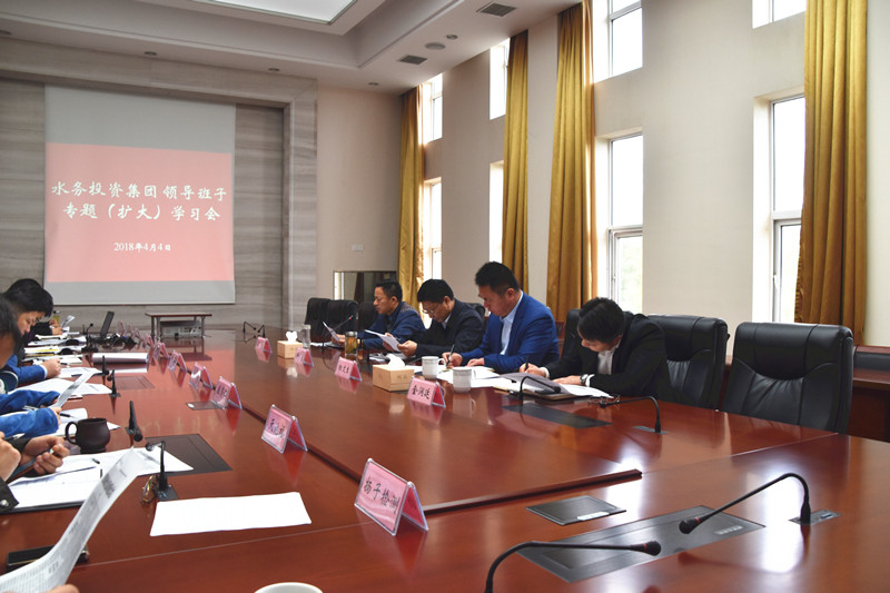 4月4日上午,水务投资集团召开关于习近平新时代中国特色社会主义思想领导班子专题学习会,全体支委参加学习,部室负责人和下属公司主要负责人列席会议,支部书记徐渊主持会议。
