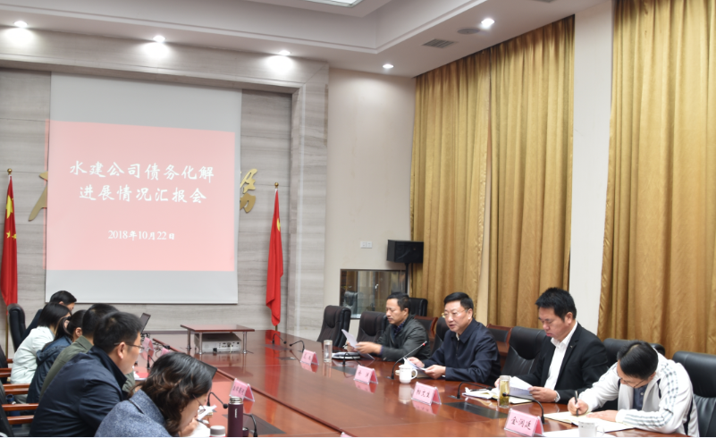 10月22日下午,集团董事长、总经理徐渊在二楼会议室主持召开专题会议,听取江苏朱玉明律师事务所关于扬州水利建筑工程公司(下称“水建公司”)债务化解进展情况汇报。集团副总经理相文生、花桃、金润廷等出席汇报会。